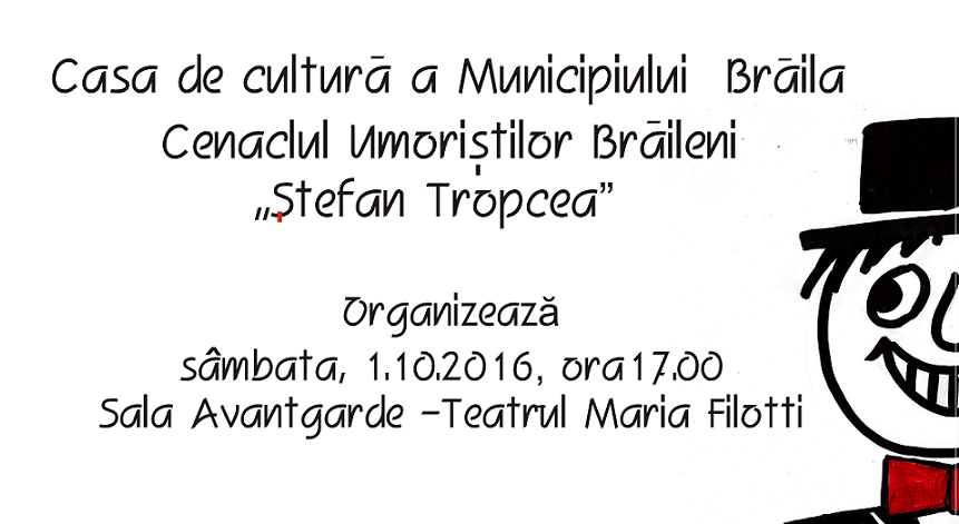 In perioada 30 septembrie – 1 octombrie 2016, Braila va gazui cea de-a XXIX-a editie a Festivalului Concurs International “Intalnirea Epigramistilor”. Manifestarea este organizata de Casa de Cultura a Municipiului, in colaborare cu Cenaclul Umoristilor Braileni (CUB) Stefan Tropcea.