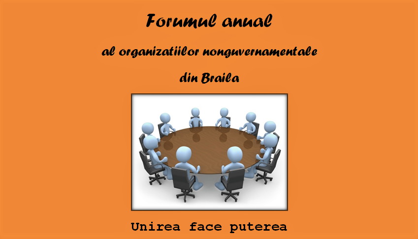 Joi, 2 februarie, la ora 14:30, in Sala Mare a Palatului Administrativ se va desfasura Forumul Anual al Organizatiilor Nonguvernamentale din Braila “UNIREA FACE PUTEREA”. Evenimentul are drept scop “cuantificarea resurselor ONG-urilor locale de realizare a unor proiecte comune si de a prezenta tinerilor liceeni din orasul Braila interesati sa devina voluntari, oportunitatile de manifestare a spiritului civic. Dorim, astfel, sa dam startul unor proiecte comune care sa dea forta actiunii fiecaruia dintre noi, iar societatea civila sa devina o voce mai puternica in Braila”.