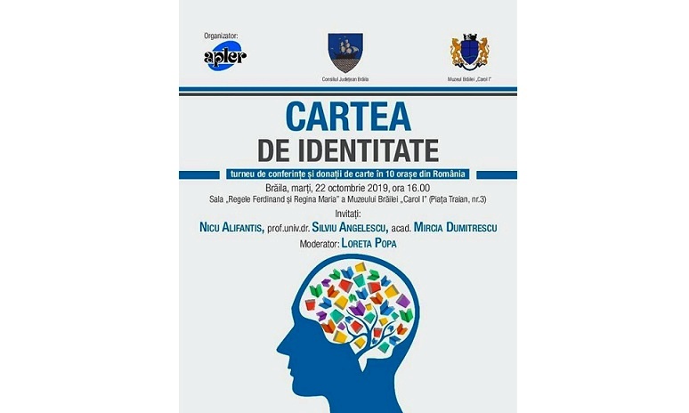 Marti, 22 octombrie, la ora 16:00, la Muzeul Brailei „Carol I” (Piata Traian, nr. 3) se va lansa a patra secventa a Turneului „Cartea de identitate”. Activitatea consta intr-o donatie de carte realizata de APLER (Asociatia Publicatiilor Literare si Editurilor din Romania), urmata de o conferinta sustinuta de Nicu Alifantis, acad. Mircia Dumitrescu si prof. univ. dr. Silviu Angelescu.