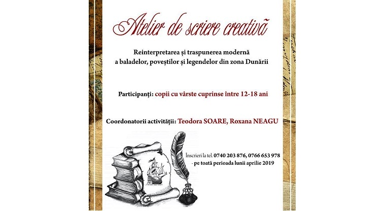Atelierul de scriere creativa este coordonat de Teodora Soare si Roxana Neagu. Inscrieri la numerele de telefon: 0740203876, 0766653978 sau pe e-mail: teodora_soare@bjbraila.ro, roxana_neagu@bjbraila.ro.