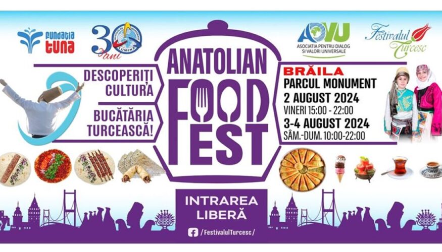 În perioada 2-4 august, în Parcul Monument din Brăila se va desfășura, în premieră, Anatolian Food Fest.