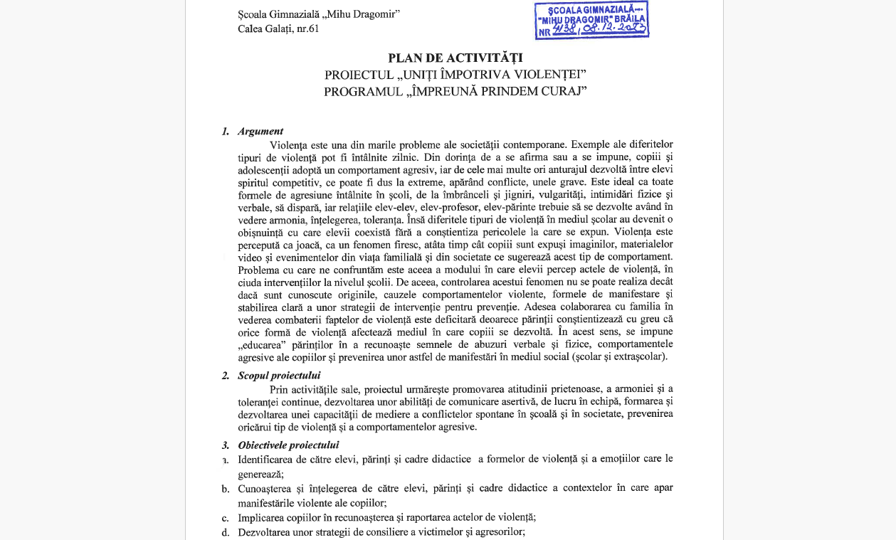 În timp ce în școala sa doi elevi sunt supuși în mod repetat unor agresiuni, directoarea Școlii „Mihu Dragomir” din Brăila le dă lecții copiilor despre faptul că nu au voie să-și folosească telefoanele pentru a face fotografii sau filmări nepotrivite în unitatea de învățământ. Lecții despre bullying să le dea alții…