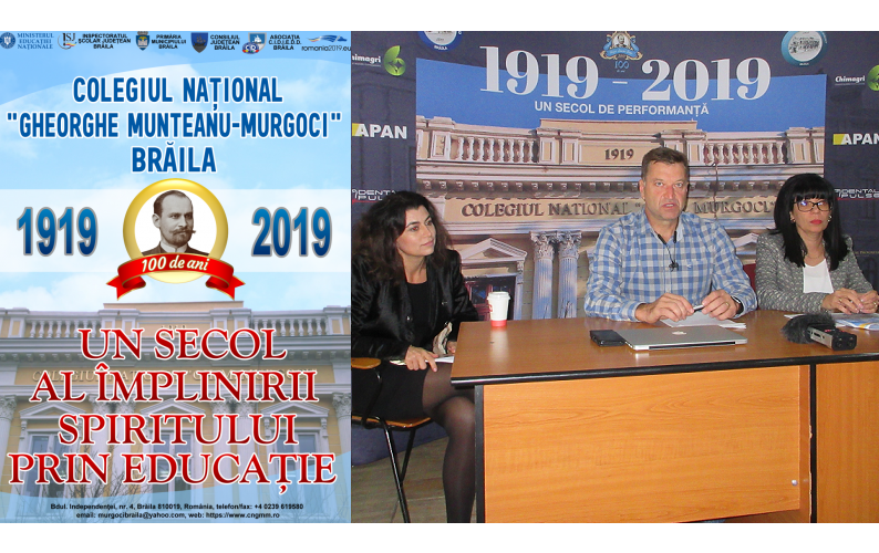 In saptamana 14-18 octombrie, Colegiul National “Gh. M. Murgoci” din Braila a sarbatorit 100 de ani de la infiintare. Cu aceasta ocazie, timp de cateva zile au avut loc o serie de actiuni sub genericul „UN SECOL AL IMPLINIRII SPIRITULUI PRIN EDUCATIE”, in cadrul unui proiect finantat de Consiliul Judetean Braila.