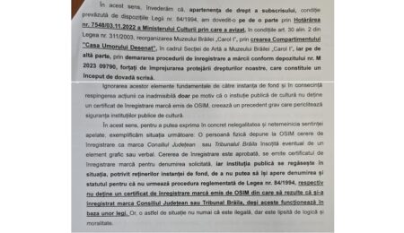 Îți stă mintea în loc: Muzeul Brăilei „Carol I” consideră că nu e corect ca instanța să-i permită lui Costel Pătrășcan să-și folosească propria marcă înregistrată, DOAR PENTRU CĂ Muzeul n-are acea marcă